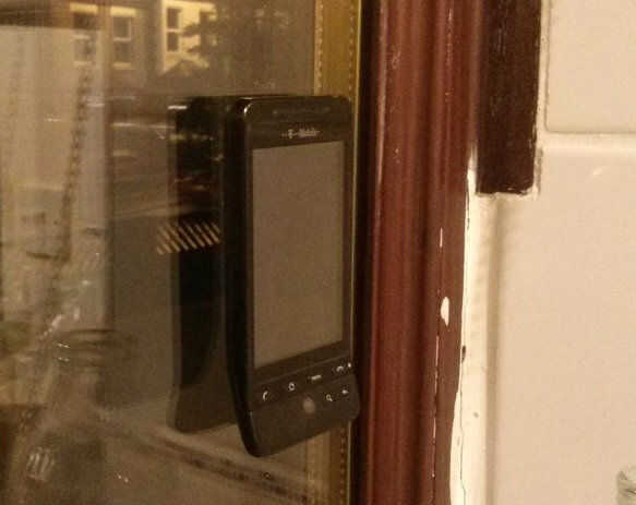 Del palillo donde tiene una buena vista de lo que sea que desea mantener un ojo en su teléfono. Yo estoy usando 3M almohadillas adhesivas de comando pero use lo que funcione para usted.