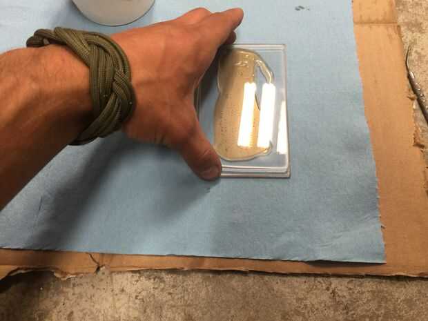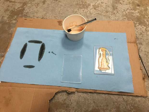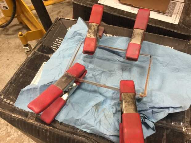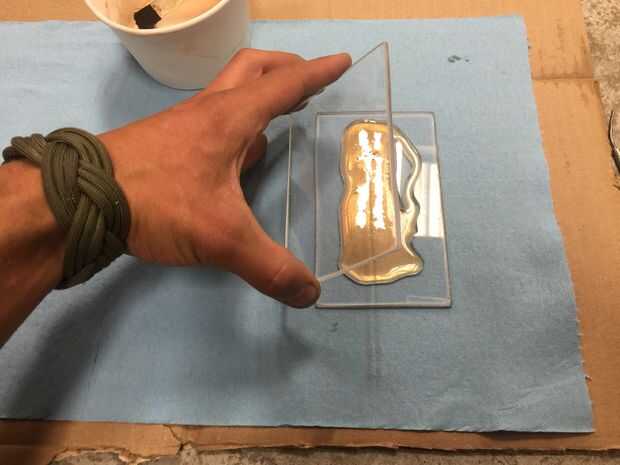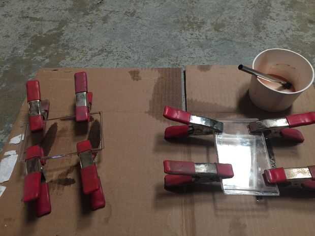 Las tapas fueron construidas de 1/4" acrílico tenía puesta alrededor de la tienda. No creo que 1/4" fue lo suficientemente espesa por lo que he intentado laminar dos piezas junto con epoxi. Todas las burbujas se vieronexcluidas el epoxi y secados perfectamente claro. Luego corté las piezas de acrílico en la forma deseada. Resultó mirar realmente bueno.