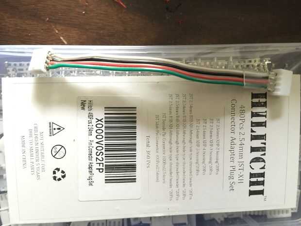Hilitchi hace un bonito kit contiene 480 piezas de conectores JST-XH de 2,54 mm, enchufes, clavijas y tomas. El kit está disponible en Amazon Prime por $20. Con este kit pude hacer 3 cables que invierte los cables en cada conector. Recuerde inversa los 4 cables por lo que sería el mismo como si fueras a enchufe el conector en la placa hacia atrás.