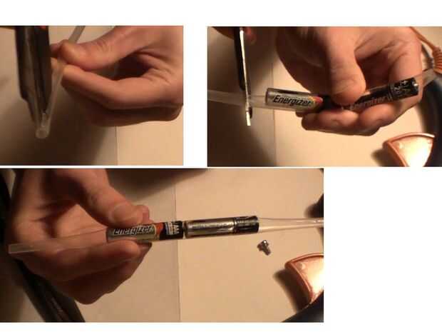 2. Luces de determinan los requisitos de la batería. Esta demo provenía de una linterna de batería de 2, pero fácilmente puede ser adaptada para 3 pilas. Pilas AAA encaja bien, pilas AA tendrá una paja más grande.