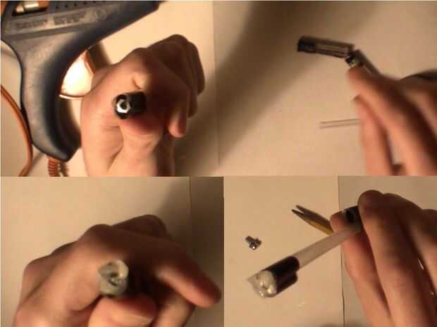 4. Tomar una tuerca que se ajusta en el otro extremo del tubo, en la parte superior (+) final de batería. Retire las pilas y luego use un lápiz para mantener la tuerca en su lugar al pegar la tuerca en el interior del tubo.