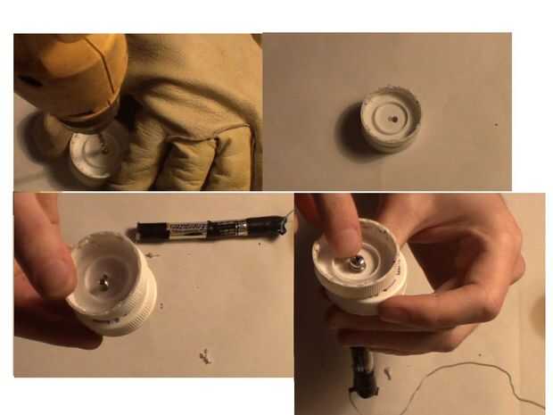 2. Conseguir una broca del tamaño como el perno (mina era 3/16") y perfore un agujero en el centro de dos tapas.