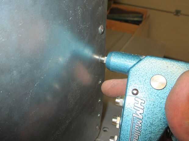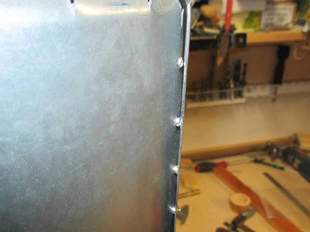 Cada tipo de remache puede necesitar sólo un tirón. Hacer uno después de otro principio o parte superior o inferior, pero don´t el interruptor, porque podría doblar el metal y hacer menos apretado de lo que debería ser. Si usted olvidó cortar el agujero para el puerto de entrada tienes que taladrar los remaches y comenzar de nuevo después de...