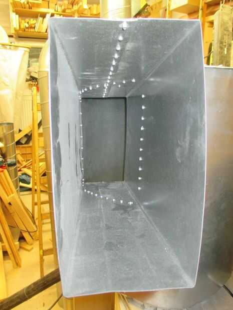 El exterior vertical los don´t necesitan ser cortados de todos modos porque encajan completamente en el puerto. Introduzca el puerto de entrada, ajuste correctamente y haga los agujeros. Remache pop como siempre. Deberá sellar las brechas con cualquier sellador tiene (silicona, betún...).