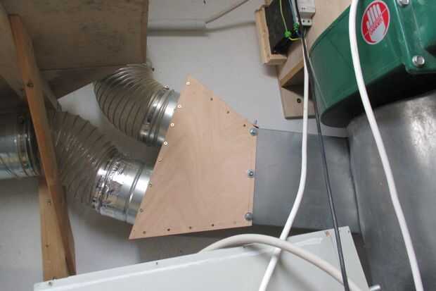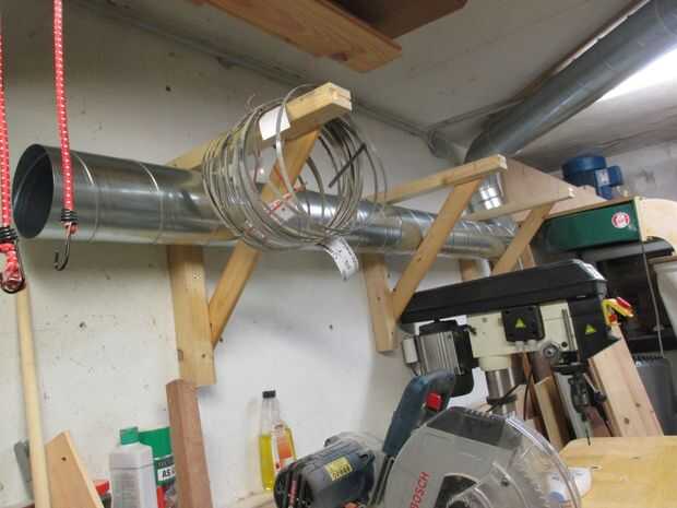 Usé algunos precinto de aluminio plateado y del uno mismo que se pega cinta de aluminio para sellar todas las conexiones. Puesto que se trata de una solución de presupuesto para la recolección de polvo sólo compré las piezas de conducto más baratas como se puede ver, que don´t sello muy bueno para ellos mismos (cuadro 2).