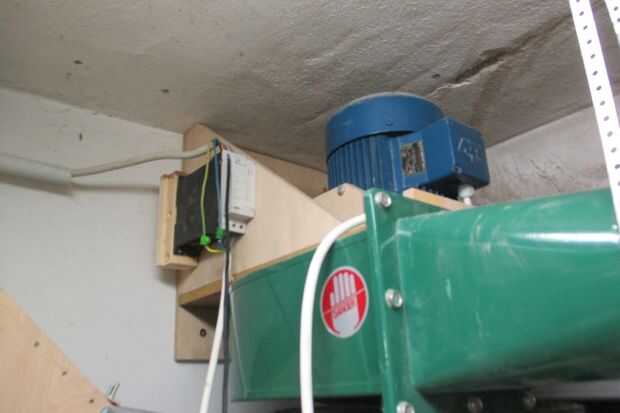 El otro dispositivo ("Frietomat") me compró algunos años antes para mi viejo sistema pero nunca tuvo el tiempo para instalarlo correctamente. Se utiliza para conectar el colector de polvo cuando empiezas la Sierra de mesa (u otros dispositivos conectan a él).