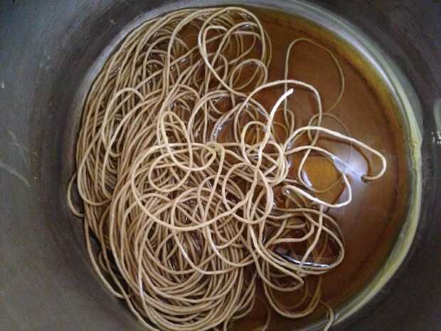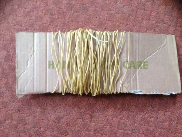 Para hacer un trabajo realmente bueno de esta colmena sería una buena idea para poner marcos en su interior. Aquí, he utilizado piezas de madera de haya que trabajado a máquina fuera de tablas más grandes, creando las secciones de 20 x 10 mm. Consiguió una bola de cadena cottom de 1,5 mm y cuidadosamente había desenrollado en algunos cera de fundición, manteniendo el extremo suelto gratis, luego hacia atrás en un trozo de cartón para mantener ordenada la herida. Unos guantes de goma son muy cerca debido al calor de la cera.