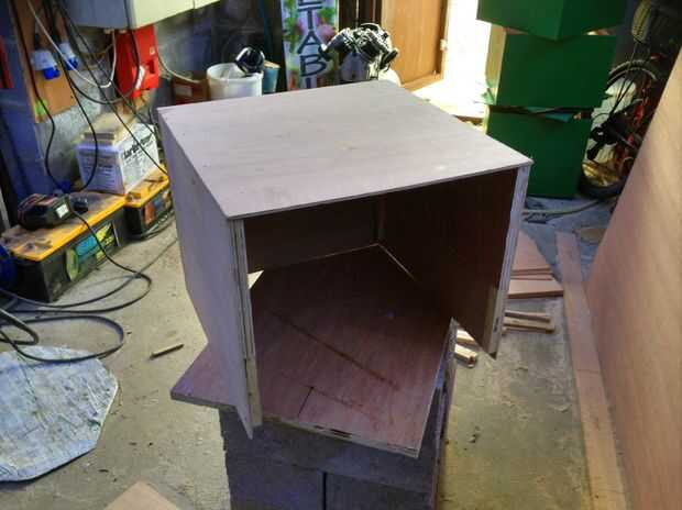 Manteniendo la estructura boca abajo sobre una superficie plana, continuar construyendo en una caja por clavado y encolado de la tapa y atornillar por los lados. Nunca encienda su lado durante este paso. Me creo que cos I hecho!