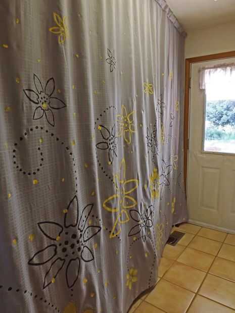 No se muestra es el dobladillo superior cosido en la hoja. Para ello, sólo dobla el borde de la hoja sobre cerca de cuatro veces y cosieron las capas en un dobladillo donde inserté ganchos de cortinas.