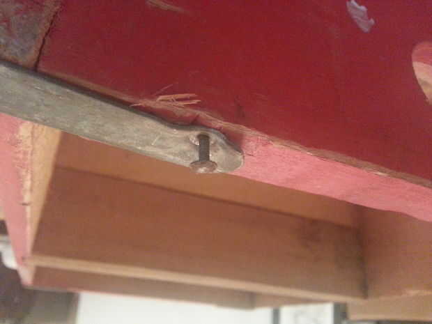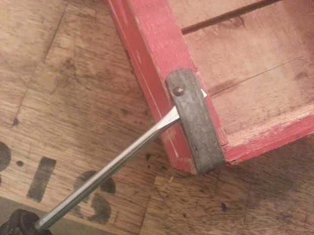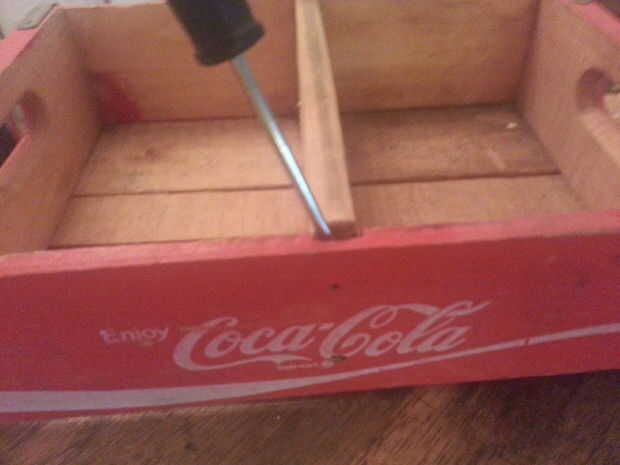 En mi cajón de soda, me encontró más clavos debajo de la banda y por el medio del panel frontal, manteniendo el medio divisor en lugar, simplemente siga los mismos pasos para remover, teniendo cuidado de no agrietar la madera.