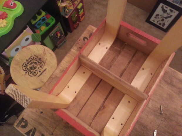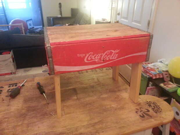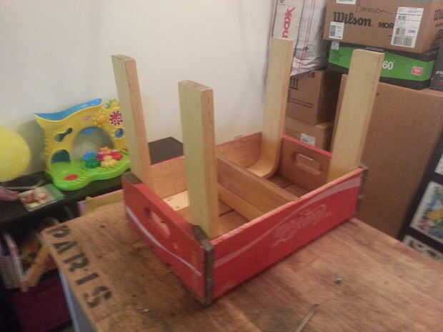 Ahora que tienes las piernas posición, usar el extra clavos para attatch les desde lo alto de la tabla (anteriormente la parte inferior de la caja). También he añadido un clavo a cada lado donde las piernas se bajan a agregar un poco de estabilidad a la tabla. Después de eso, ¡ listo!