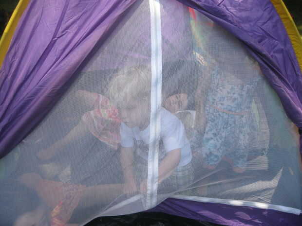 Usted no necesita una tienda de campaña. Puede simplemente cuelgue de una cadena y una lona, o simplemente colocar una manta y el "sueño" bajo las "estrellas".