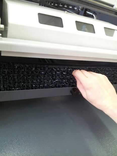 Sujete la malla en el centro y tire hacia arriba y hacia sí mismo para quitar de la bandeja de retén.