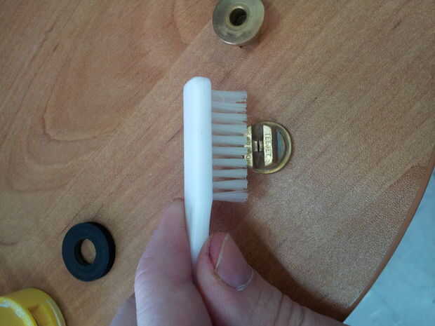 Use un cepillo de dientes para limpiar el orificio desde el lado de la boquilla de la tobera.