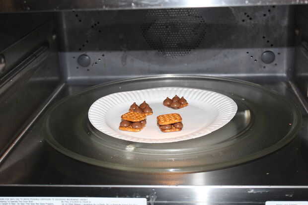 Coloque las galletas en el microondas. Establezca el microondas un minuto en high. Coloca las galletas en él.