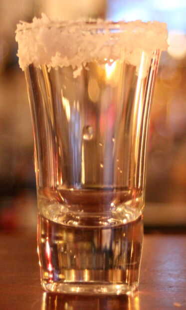 Paso 1 - borde sal del vaso ejecutando una cuña de limón alrededor del borde del vidrio y sumergir el borde de la sal.
