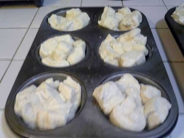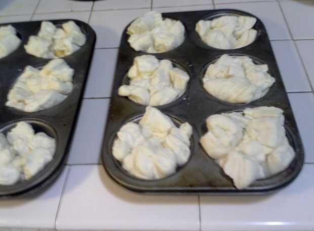 Para estilo de fantan rodillos, latas de forma colocando cada pila de capas de masa en el muffin.