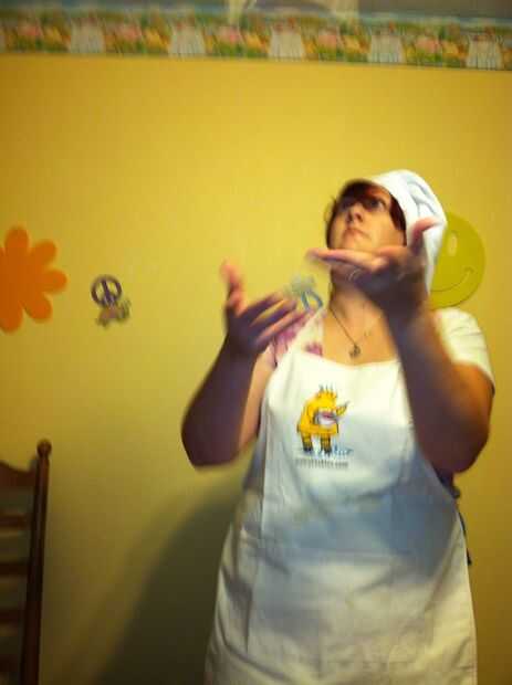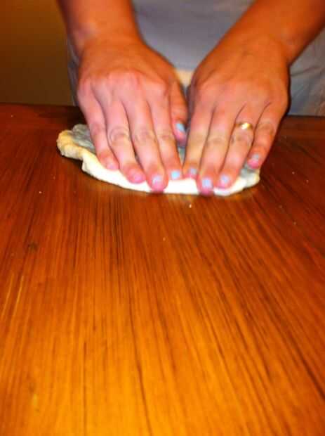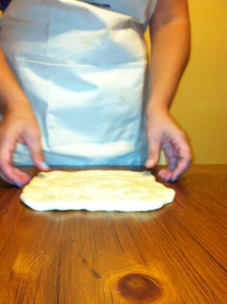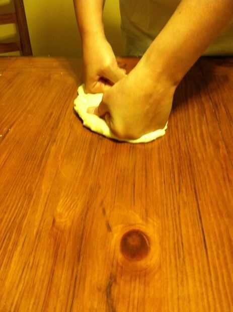 Use un pedazo grande de pasta del pretzel. Rodar en una bola y comience a romper hacia fuera. Utilice un perno de balanceo si desea. Mezcle en el aire. Sin embargo usted puede aplanar, sólo hacerlo.