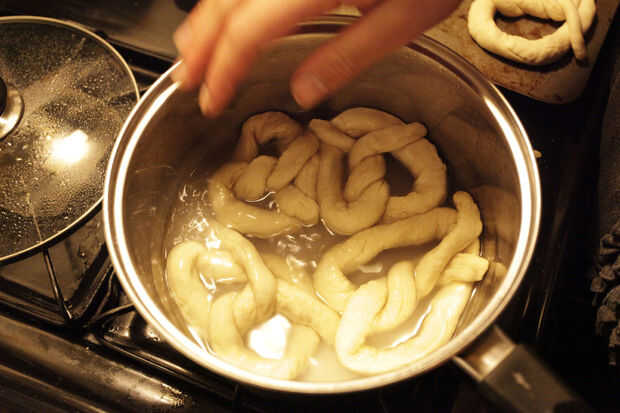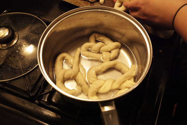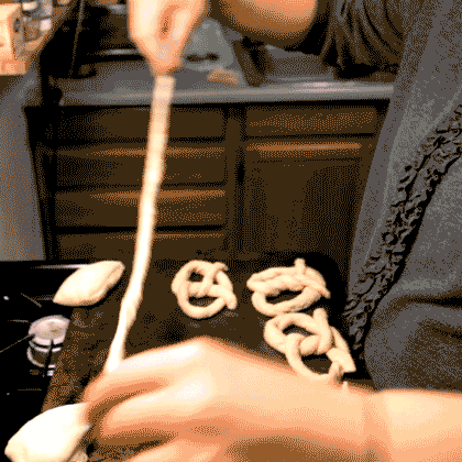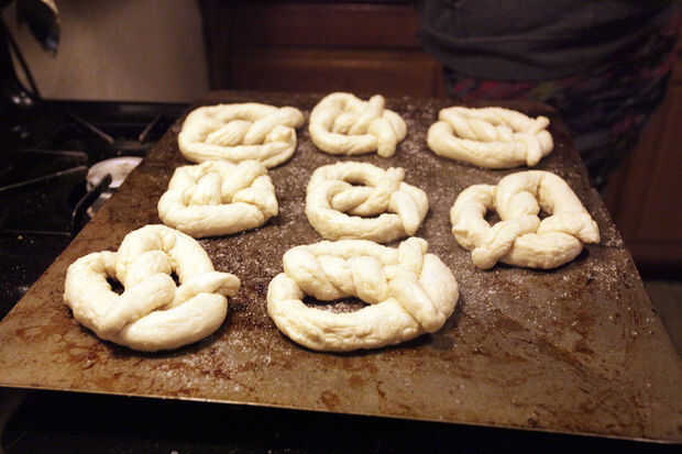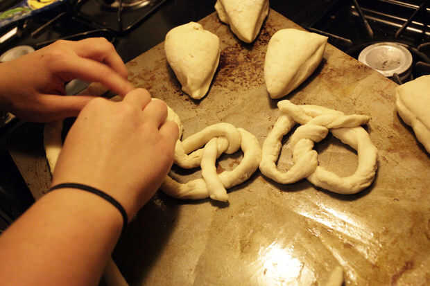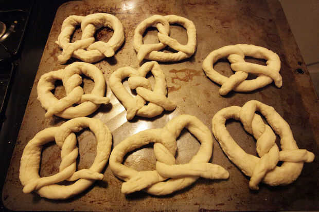 mi novia me trajo casa esta receta hace un tiempo y ella quería probar lo que es conmigo. Nuestro primer intento y estos pretzels salieron excelente, suave y masticable, pero salado. : PCon un poco de paciencia, usted puede hacer demasiado con poco t