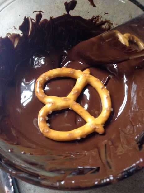 cubierto de Chocolate shot de pretzelSiempre beber con responsabilidad y utilizar un conductor designado!Lo que se necesita:vodka 1 onza batida1oz de Frangelico (licor con sabor de avellana)SalVidrio de tiroCocteleraHieloOpcional - pretzel cruce choc