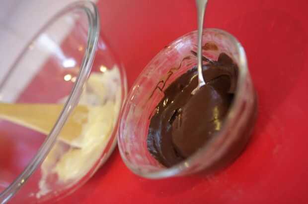 Por ahora, el cacao debe ser completamente disuelto en el agua y tibio, no caliente. Agregar a la mezcla de mantequilla y revolver bien.