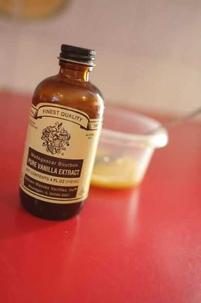 En esta mezcla, añadir un huevo ligeramente batido y la vainilla. Mezclar bien.