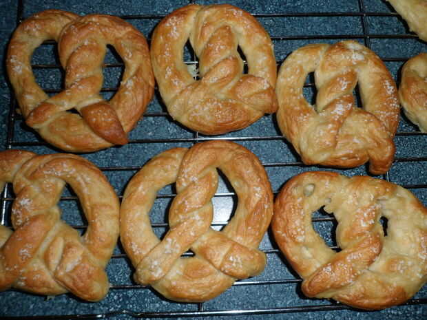 mi novia me trajo casa esta receta hace un tiempo y ella quería probar lo que es conmigo. Nuestro primer intento y estos pretzels salieron excelente, suave y masticable, pero salado. : PCon un poco de paciencia, usted puede hacer demasiado con poco t