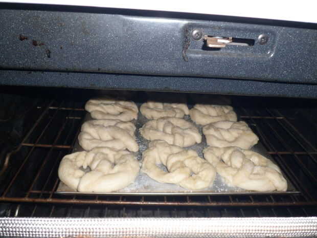 Al hacer esto, los fondos de algunos de los pretzels eran un poco caldoso, así que les volcó y había horneado para otros 2 o 3 minutos.