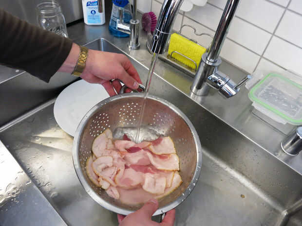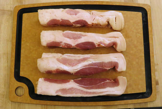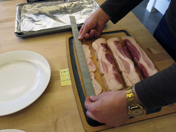 Para probar nuestra hipótesis, hemos adquirido nuestro material de referencia, también conocido como Safeway granjas en rodajas Hickory Smoked Bacon gruesa, en la cantidad de tres libras.