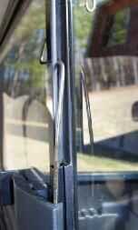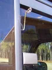 Meneo y deslice el cable en su posición como se muestra, con el fin de la punta del cable hacia abajo en la boca del cocodrilo. Gire el extremo del lazo del alambre hacia afuera para empuje abierto boca de cocodrilo ligeramente, a continuación, abra la ventana. Vista exterior del cable en su lugar y tres vistas interiores.