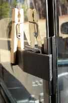 Puede evitar que alguien Abra su camión corredera ventana trasera con esta herramienta colocando una cuña debajo de la cola de cierre de piel de cocodrilo. Ilustra un pin de ropa, pero redujo un pedazo de plástico de desecho negro que hace el truco y no se entrometen en mi retrovisor. Puedo sentir bien desde el asiento del conductor para quitar sin mirar entonces abierto el cerrojo y deslice la ventana. Dejo la cuña cuelgan desde el cierre de una cadena corta cuando la ventana está abierta, porque podría dañarse el cierre si la ventana se ha deslizado cerrado con la cuña en su lugar.