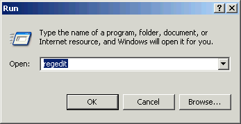 1. para cambiar los datos del registro tiene que ejecutar el Editor del registro de Microsoft - RegEdit.exe. Puede hacer clic en el botón Inicio, luego seleccione ejecuta... punto. Cuando se aparece la ventana de ejecutar, entonces teclea 'RegEdit' en abierto: cuadro de texto y haga clic en botón Aceptar.