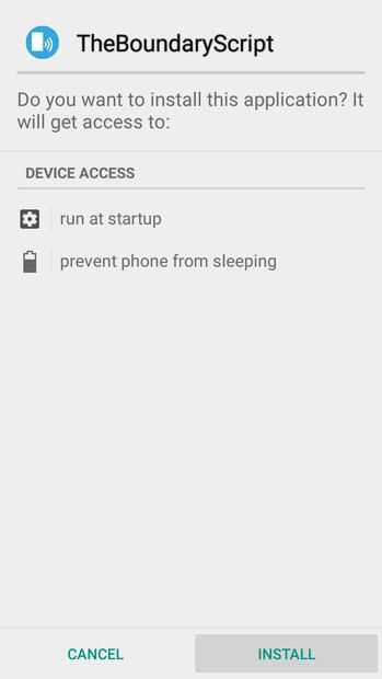Hay dos maneras de hacerlo, si quieres hacerlo fácil o no quieren pagar por Tasker, Echale un vistazo esta apk preestablecida que hice. Todo lo que tienes que hacer es Asegúrese de que ha habilitado la opción de instalar aplicaciones desde orígenes desconocidos en la configuración de seguridad y luego haga clic en el archivo TheBoundaryScript.2.apk encontradas sobre, descargar e instalar haciendo clic en él después de ha descargado.