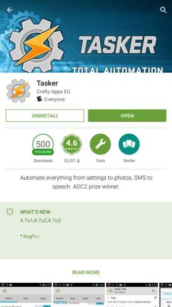 -Nota: Esta aplicación no tiene una interfaz de usuario. Simplemente realiza la función de que Tasker, así que le mantenga en su teléfono. También cuando primero toca en él, le pedirá que instalar algunas dependencias si han no ya, solo lo dejas encontrar las aplicaciones para usted seleccionando el botón "sí".
