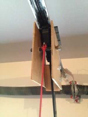 Mi solución al problema de la intrusión de puerta garaje segundo seis no es perfecto. Es seguro, pero requiere recogiendo y usando un banquito cuando necesito liberar el viajero del brazo de la puerta.