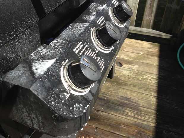 El panel de control de esta parrilla fue bastante grimey así que siguió adelante y le dio una rápida exfoliación. Simplemente rocíe hacia abajo, limpie su paño, repetir como aclaración necesaria, abajo, dejar secar. Bastante sencillo ¿EH?