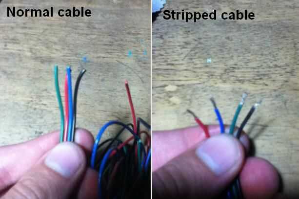 En esta ocasión utilizamos colores de los cables diferentes para distinguir la alimentación positiva y el color se activará. Tenemos que pelar las puntas de alambre.