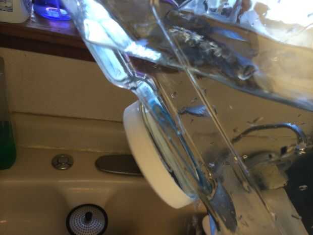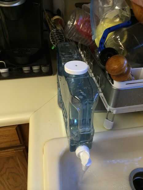 Oh la vuelta el envase y no dejar goteando totalmente, pero lo suficiente como para no tener un derrame importante.