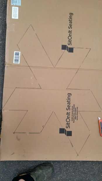 Después outputing esto a un formato imprimible en 3'x 4', puso hacia fuera en un pedazo grande de cartón y remontarlo (después de un poco de ensayo y error, encontramos que una longitud del borde de aproximadamente 8" hecho un globo suficientemente grande para la cabeza, pero no demasiado grande para el cuello.