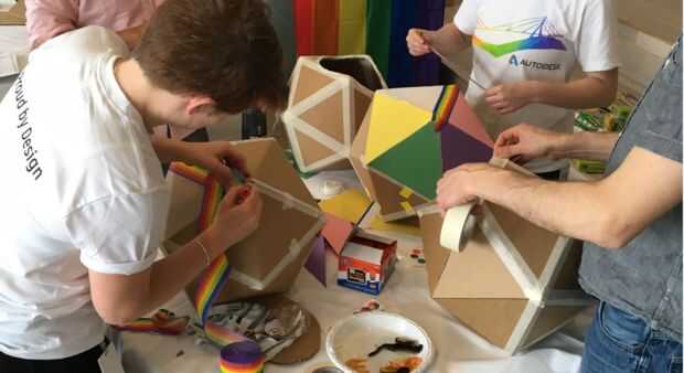 Finalmente, al llegar a la derecha de tamaño, consigue ocupado con algunos pintura, limpiadores de pipa, pegatinas, papel crepé, piel, papel aluminio, cualquiera que sea. Luego pegar en la cabeza y fuera de la roca. Estas son algunas de las variaciones de la gente impresionante en la oficina de Autodesk Boston!