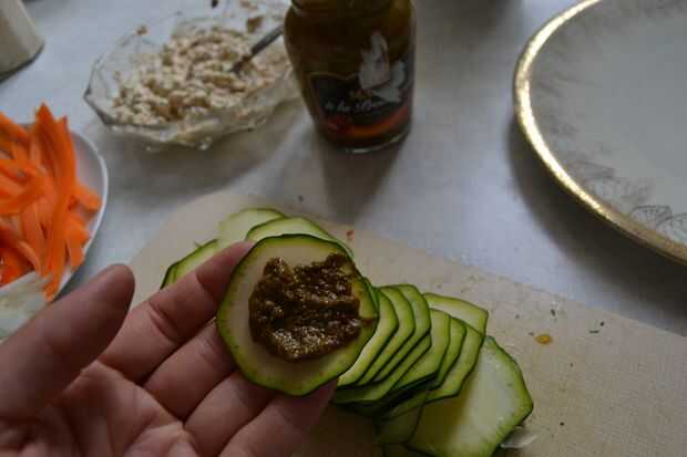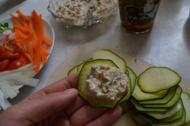 Si no eres un fan de calabacín, también puede utilizar cualquier verdura roundish que puede cortar en rodajas, remolacha roja funciona muy bien y se ve fantástico. también puede mezclar el queso crema con otras cosas, como te gusta.