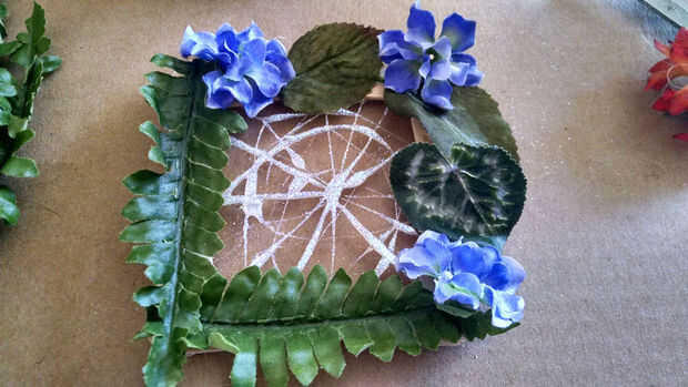 Las decoraciones que elegí son falsas flores y hojas y marcadores.