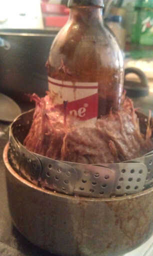 poner vapor en tazón horno entonces coloque taza de carne de res. la razón de ser, es así que la grasa no meterse hasta el fondo.