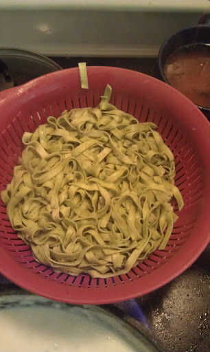 Primavera de Fetuccini con salsa de llenado central (16 / 21 paso)