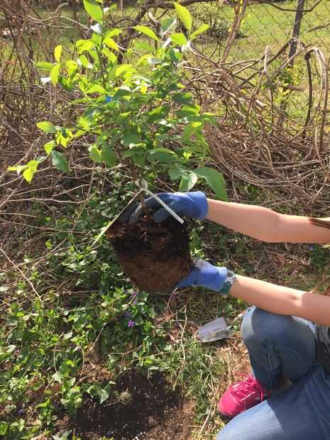 1. Tome su planta fuera de su pote plástico y poner en el agujero