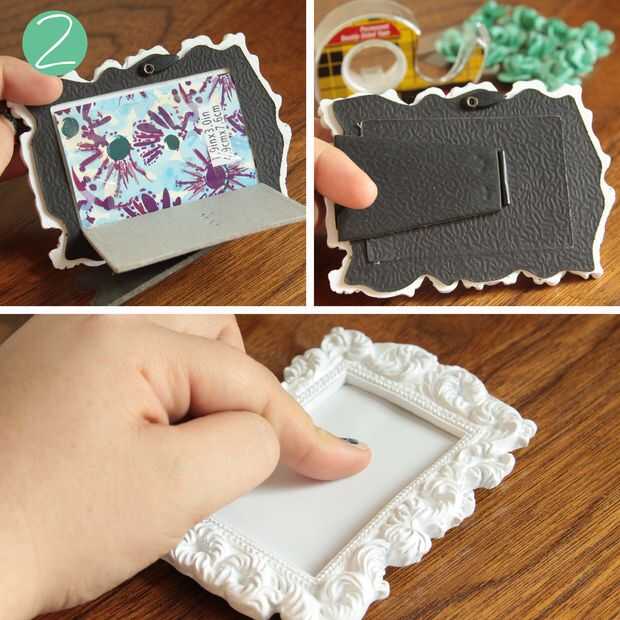Ponga el papel ahora con cinta en el marco con el lado bueno hacia el frente y la parte grabada hacia el respaldo. Cerrar el respaldo en el papel y luego Dale la vuelta y asegúrese de que su fondo es suave y presionada firmemente contra el respaldo.