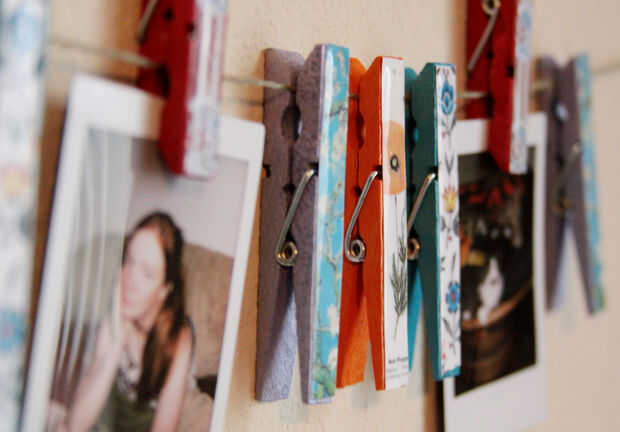 No sé ustedes, pero me encanta colgar fotos. En todas las maneras y formas. Utilizar tableros de corcho, cuadros, imanes y cadena con clips y alfileres de la ropa. Uno de mis besties, Kat, me dio un sistema para colgar fotos que no era más que una cadena negro con clips que cuervos encima de cada uno. Mis fotos parecen están colgando de las garras de pájaros en un alambre. Tan genial!