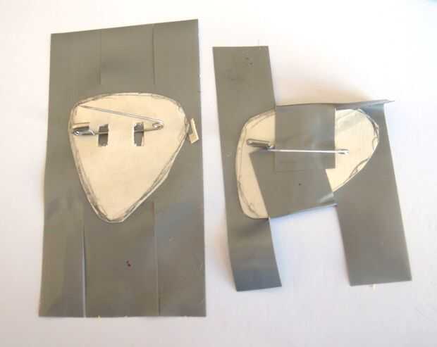 Cinta del conducto es bastante amplia así que hacer recortes en lo que sea más fácil cubrir los broches. Pegue la cinta sobre el cartón. Palillo de poco más de cinta sobre el cartón. Pasadores de palo de atrás al frente.