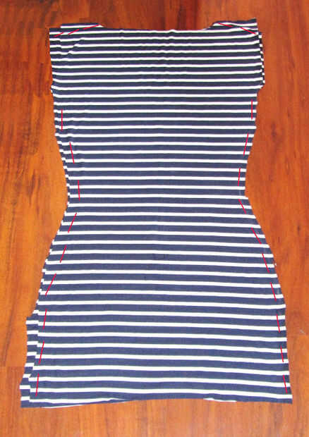 - Coser a lo largo de las líneas rojas marcadas. (ver imagen)