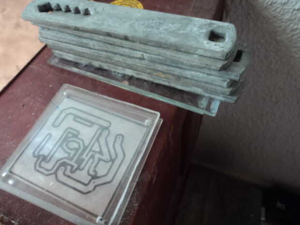 Ya utilicé el método de pcb fotosensible imprimir el circuito en modo negativo con algunas transparencias de proyección. Dos o más son requeridos para obtener un color más oscuro que evitar la exposición indeseada de algunas zonas en el tablero.